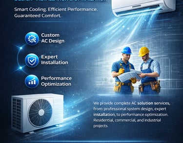 We provide complete AC solution services, including professional system design, expert installation, and performance optimization. Our team carefully analyzes your space to design an energy-efficient air conditioning system that ensures maximum cooling, comfort, and cost savings.